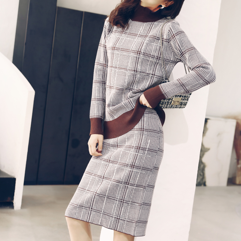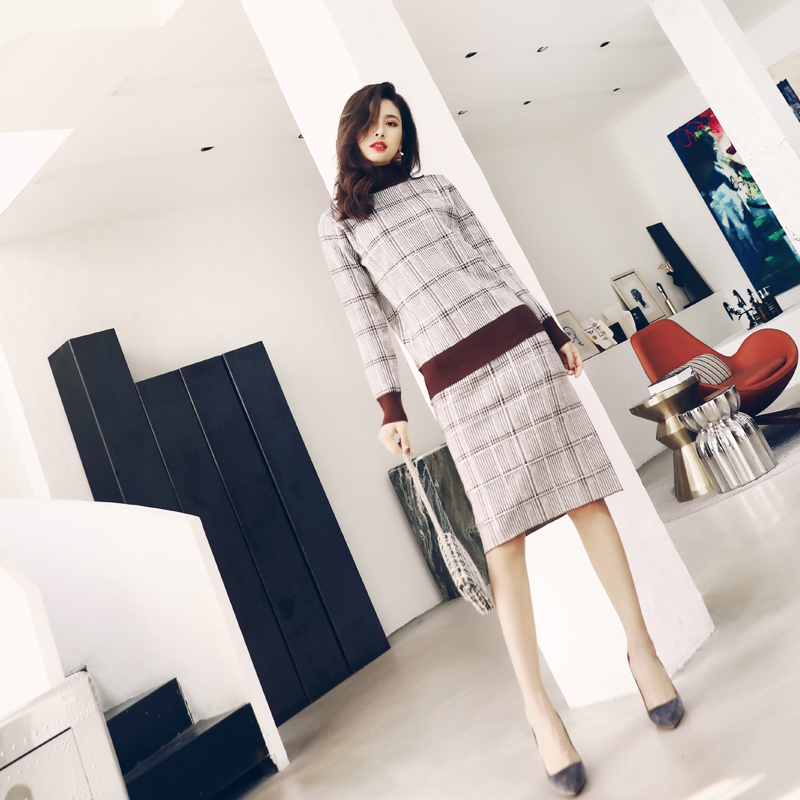 名媛針織網紅套裝慵懶風裙子燙鉆毛衣女2018新款時尚兩件套冬季潮