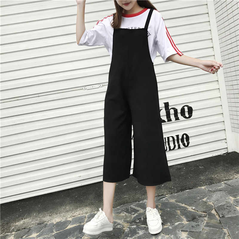 2018夏季新款女裝韓版寬松顯瘦黑色背帶褲女學生休閑闊腿連體褲潮