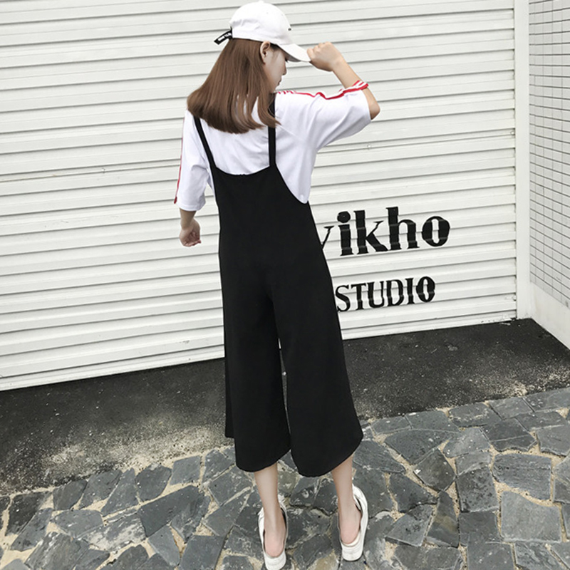 / 2018夏季新款女裝韓版寬松顯瘦黑色背帶褲女學生休閑闊腿連體褲潮