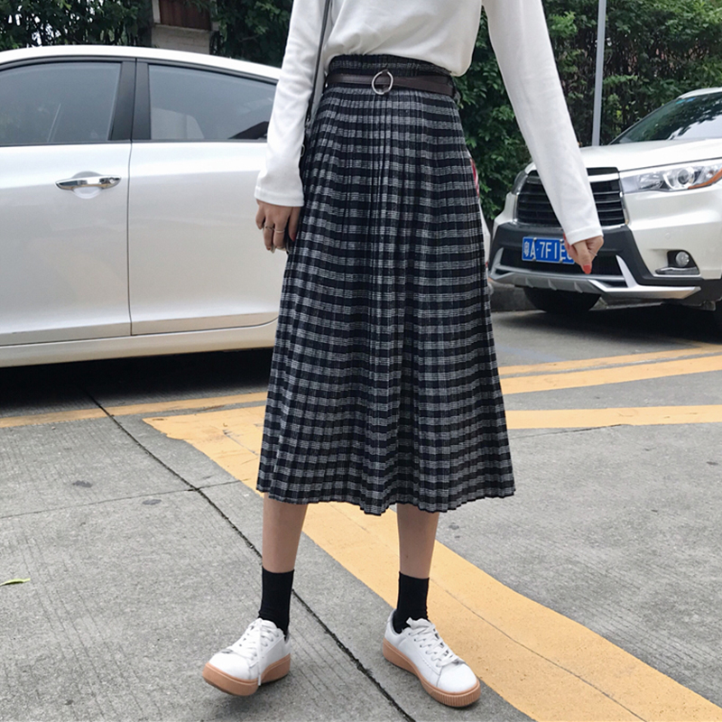 / 中長款毛呢復古格子半身裙女秋冬裝2018新款韓版高腰a字百褶裙子