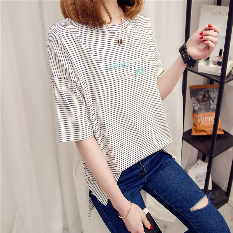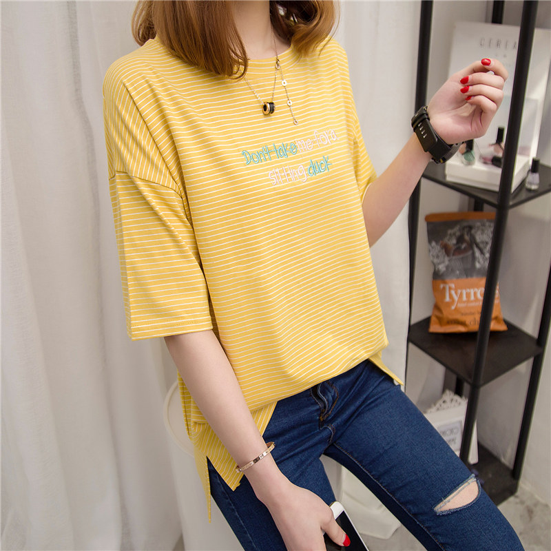 條紋短袖t恤女寬松打底衫女夏季韓版學生女裝新款女衣服百搭