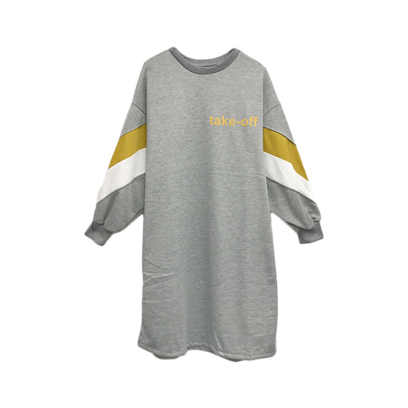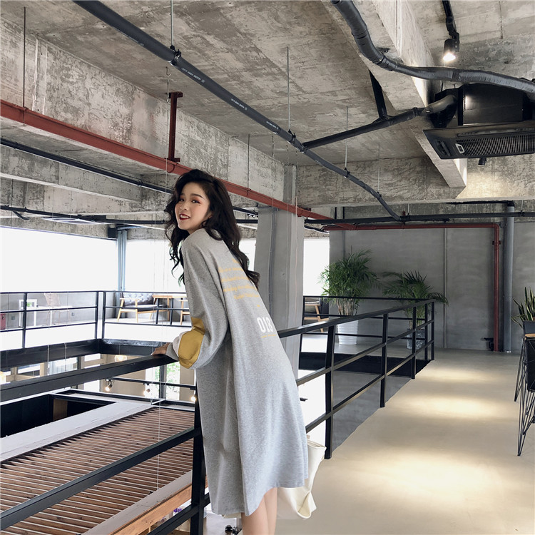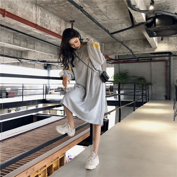早秋衛衣2018新款女長袖韓版chic寬松顯瘦中長款拼色連衣裙衛衣潮