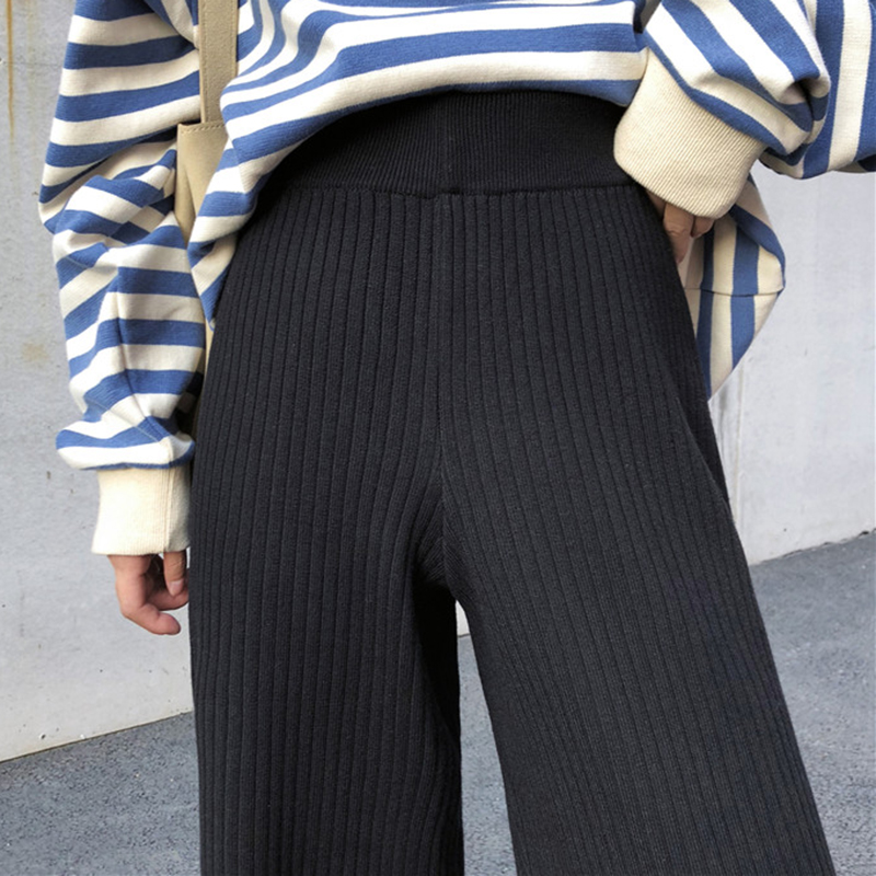 / 2018秋冬新款女裝墜感針織闊腿褲女學生寬松顯瘦黑色高腰休閑褲子