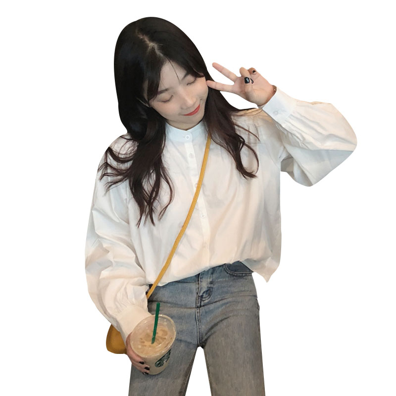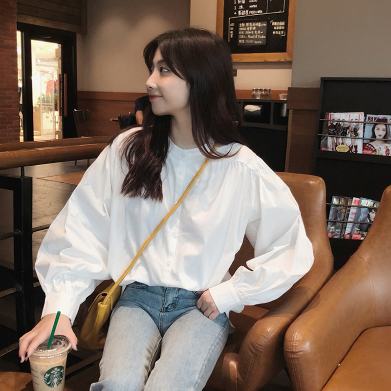 秋季女裝2018新款韓版復古chic寬松中長款港風長袖休閑白襯衫上衣
