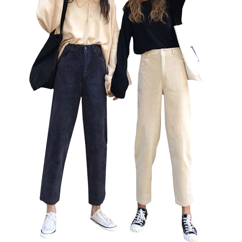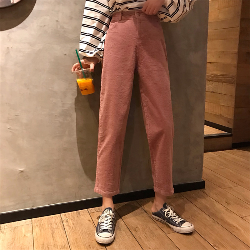 2018新款秋冬韓版燈芯絨休閑褲闊腿褲寬松直筒褲九分褲學生褲子女