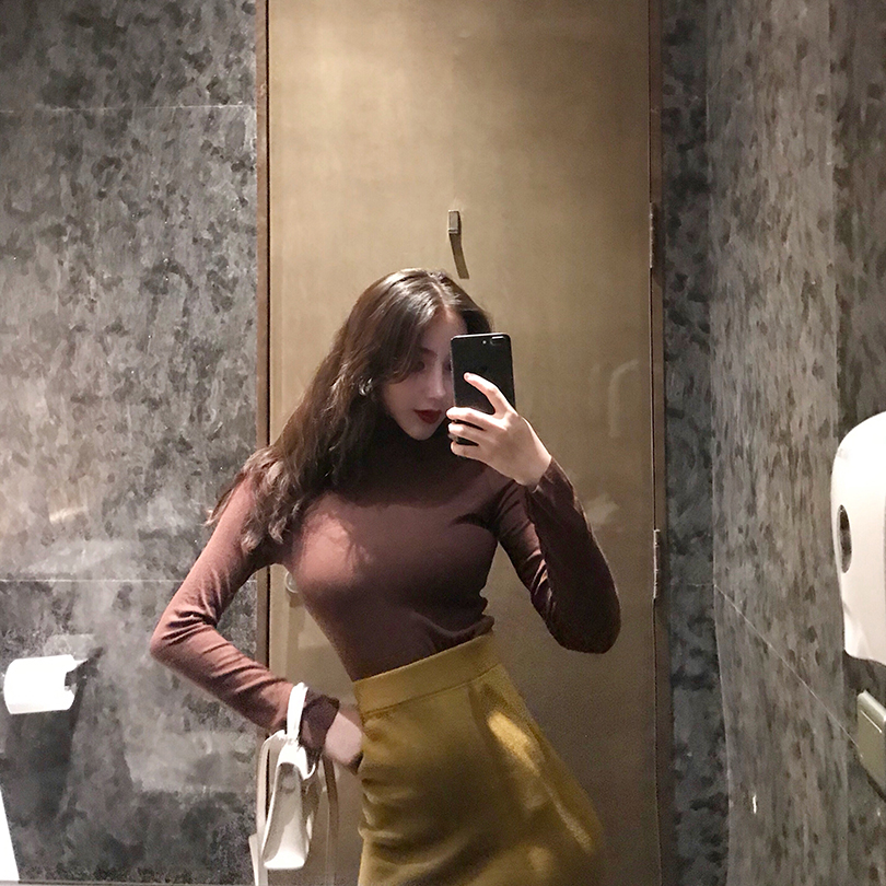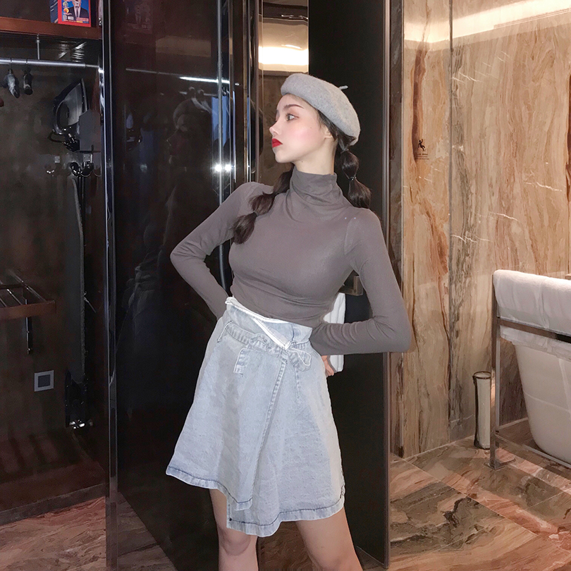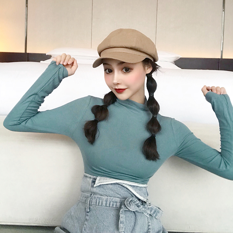 / 新款韓版百搭早秋慵懶t恤女長袖打底衫半高領修身顯瘦chic上衣潮