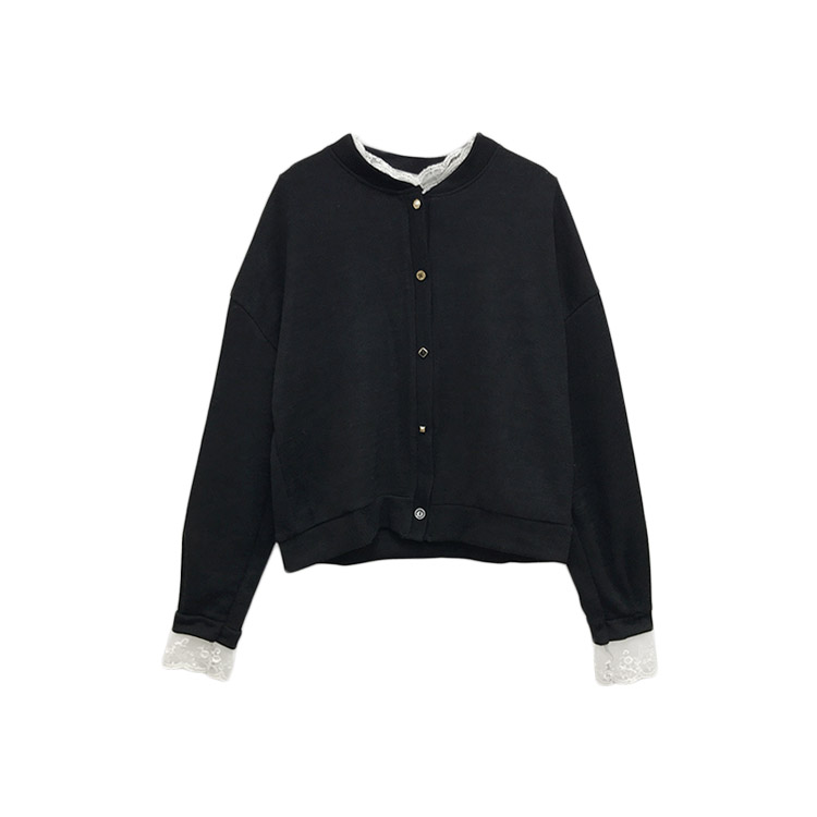 / 韓國復古風百搭外套女秋裝2018新款寬松顯瘦蕾絲拼接氣質短款上衣