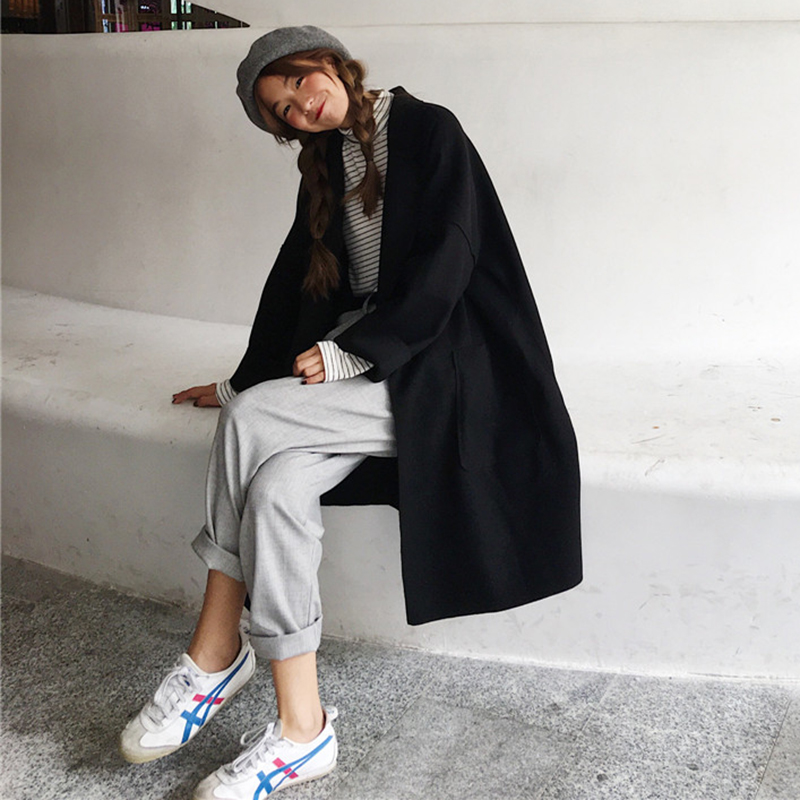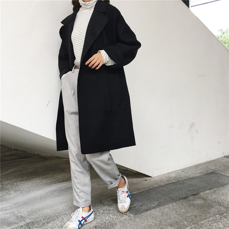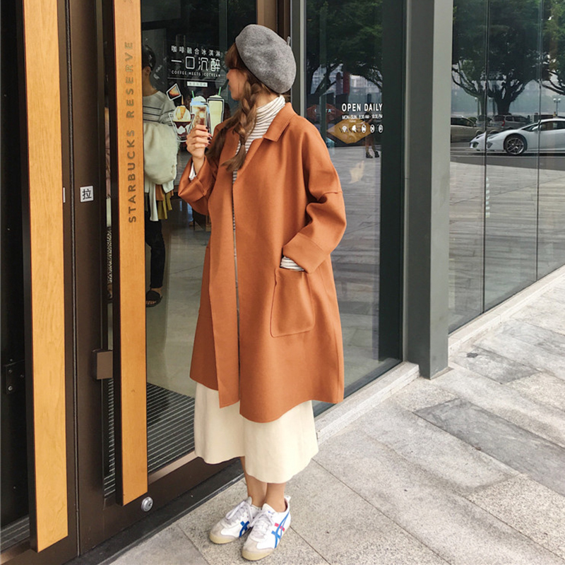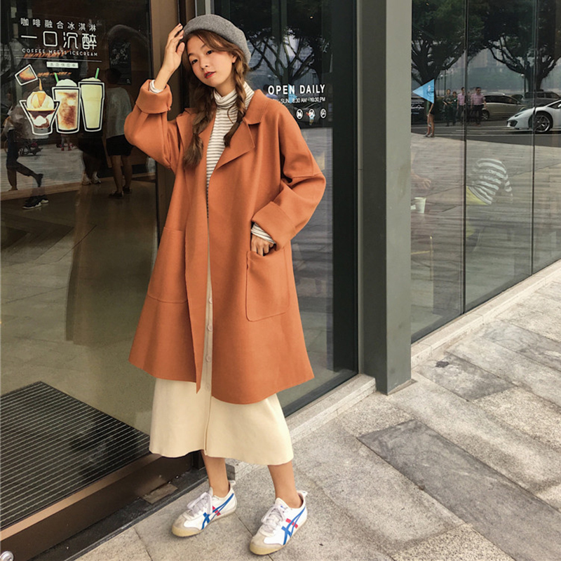 中長款2018流行呢子大衣女秋冬裝新款韓版寬松休閑長袖毛呢外套潮