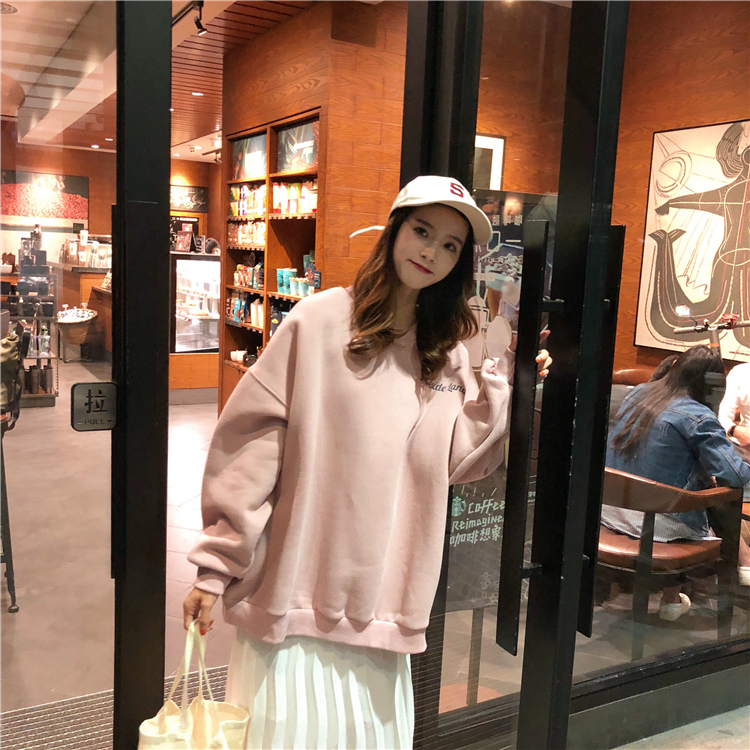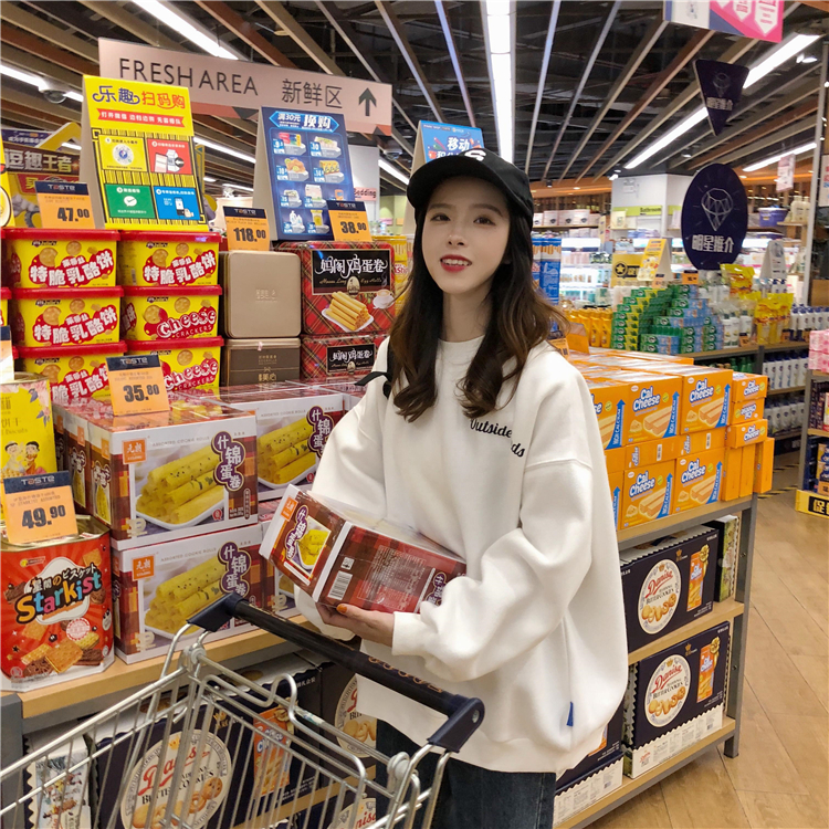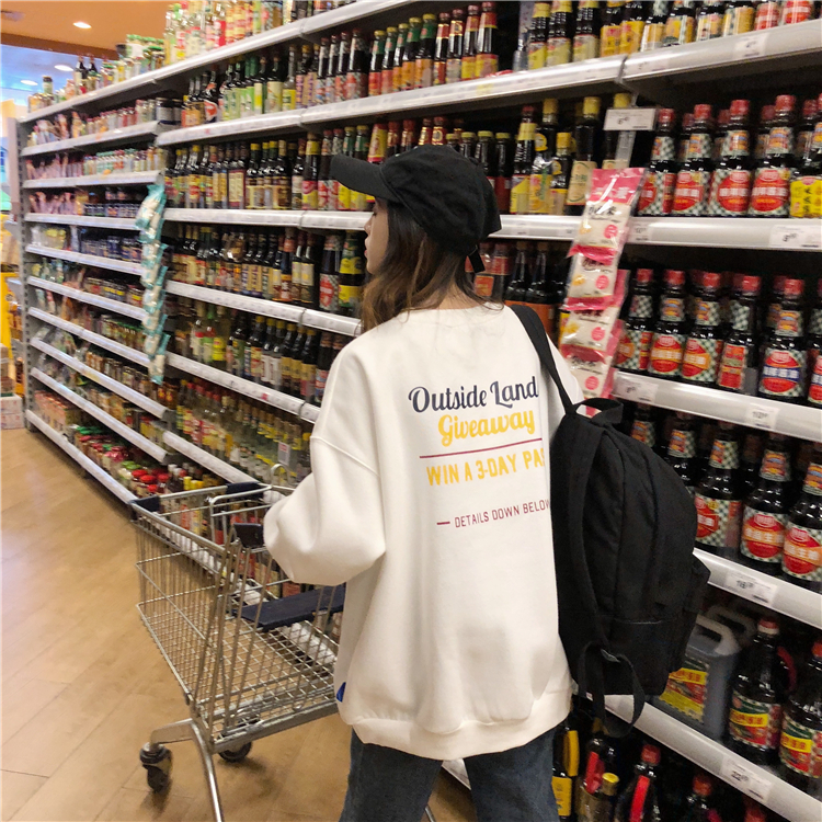 / 秋冬女裝韓版寬松中長款原宿風字母加厚抓絨套頭超火衛衣上衣外套