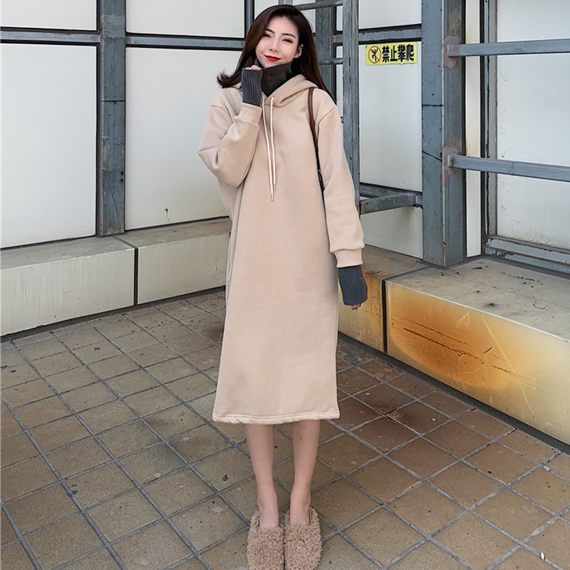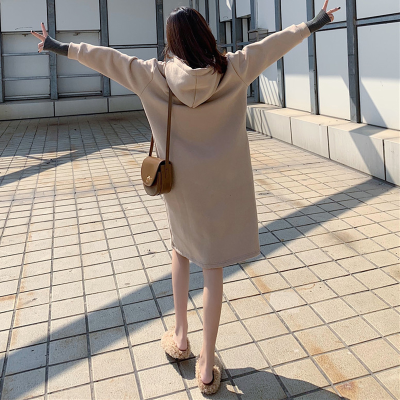 假兩件長款加絨衛衣2018新款女秋冬裝港風黑色連帽外套長袖上衣潮
