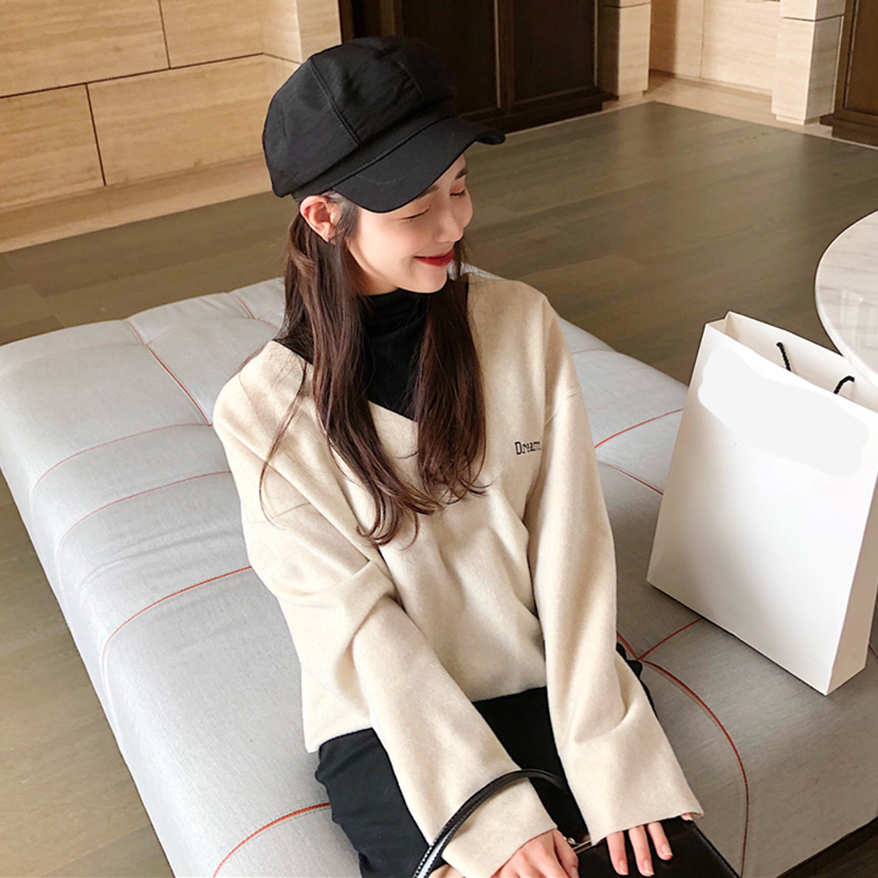 氣質女神兩件套秋冬新款毛呢寬松V領套頭上衣修身高領彈力連衣裙