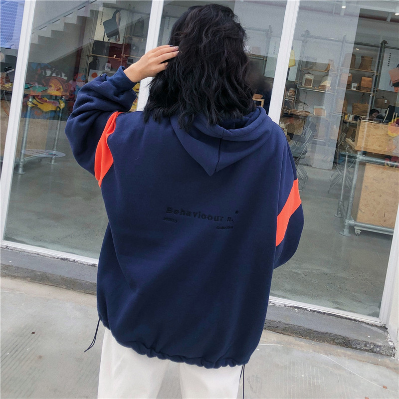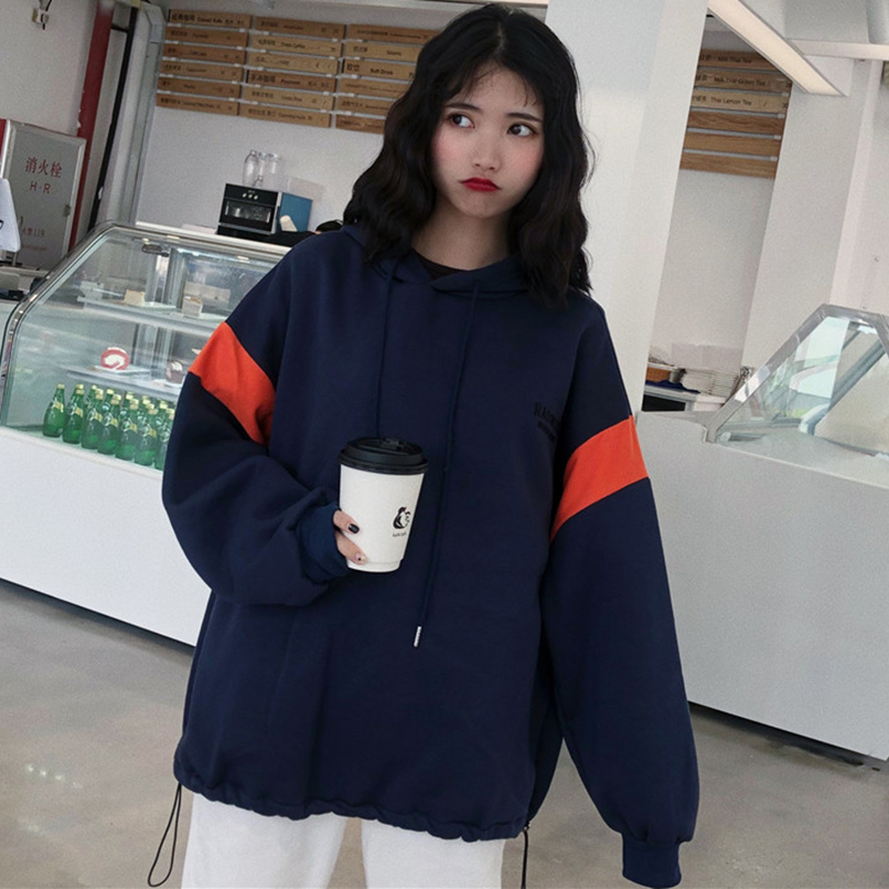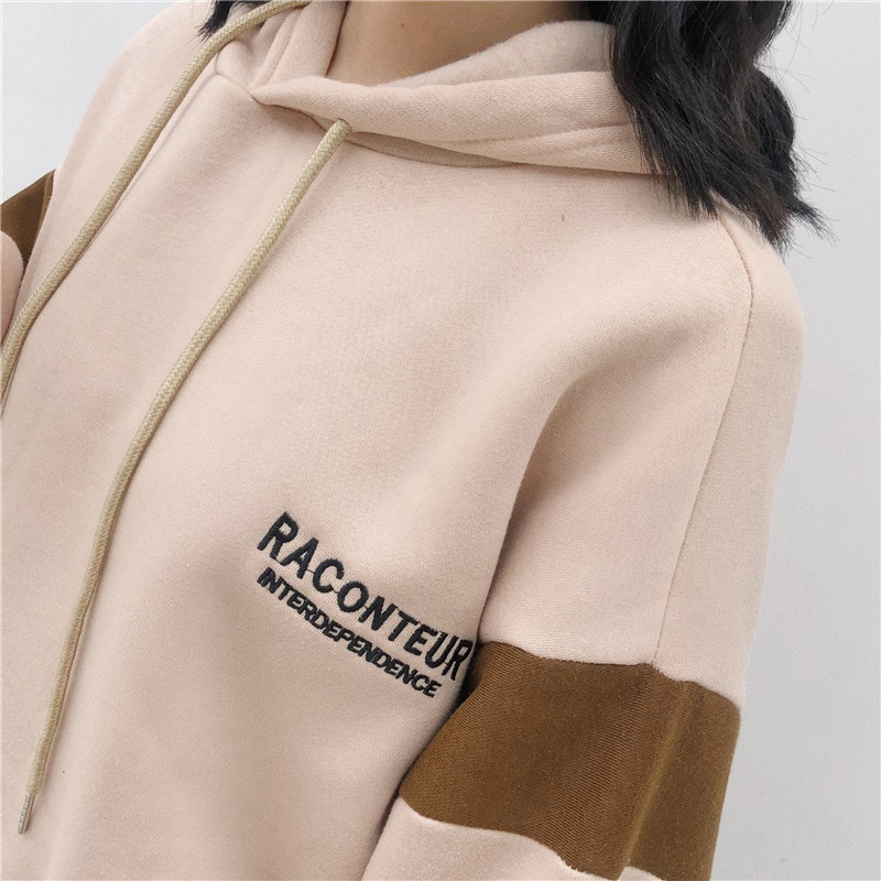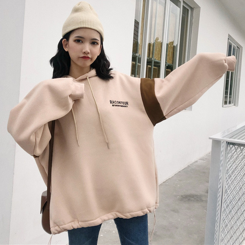 / 時尚字母刺繡加絨衛衣2018新款女秋冬裝港風連帽外套寬松長袖上衣