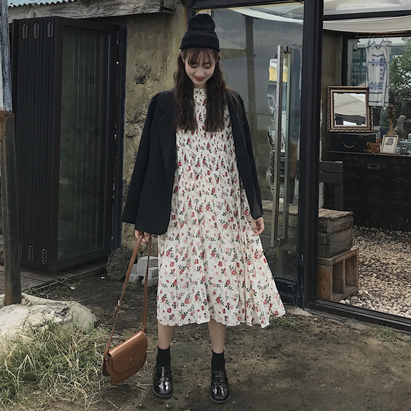 清新的花色撐起整條裙子的場面 不會顯得死板