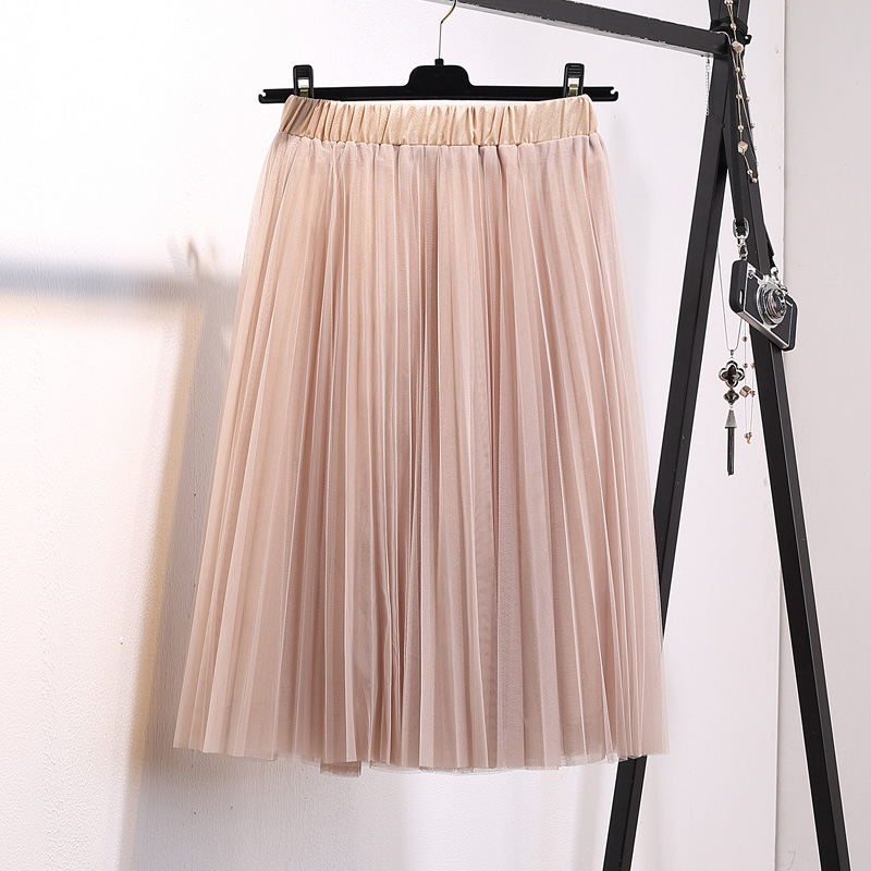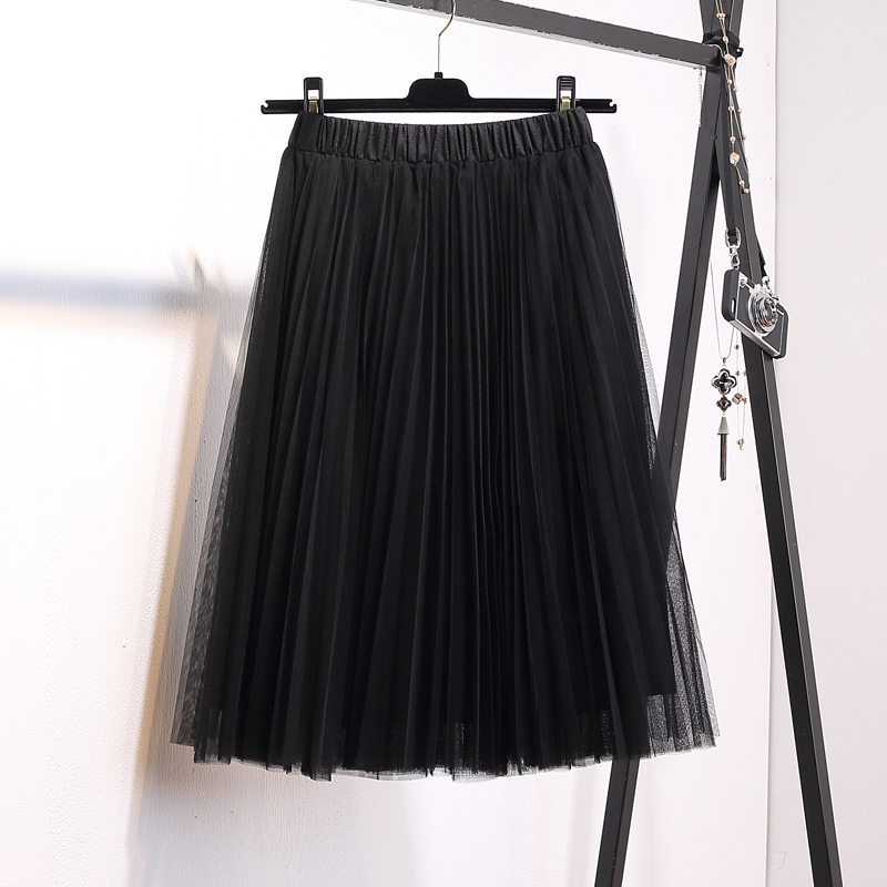 / 中長款網紗裙春夏季新款韓版女高腰百搭雪紡百褶蓬蓬半身裙子