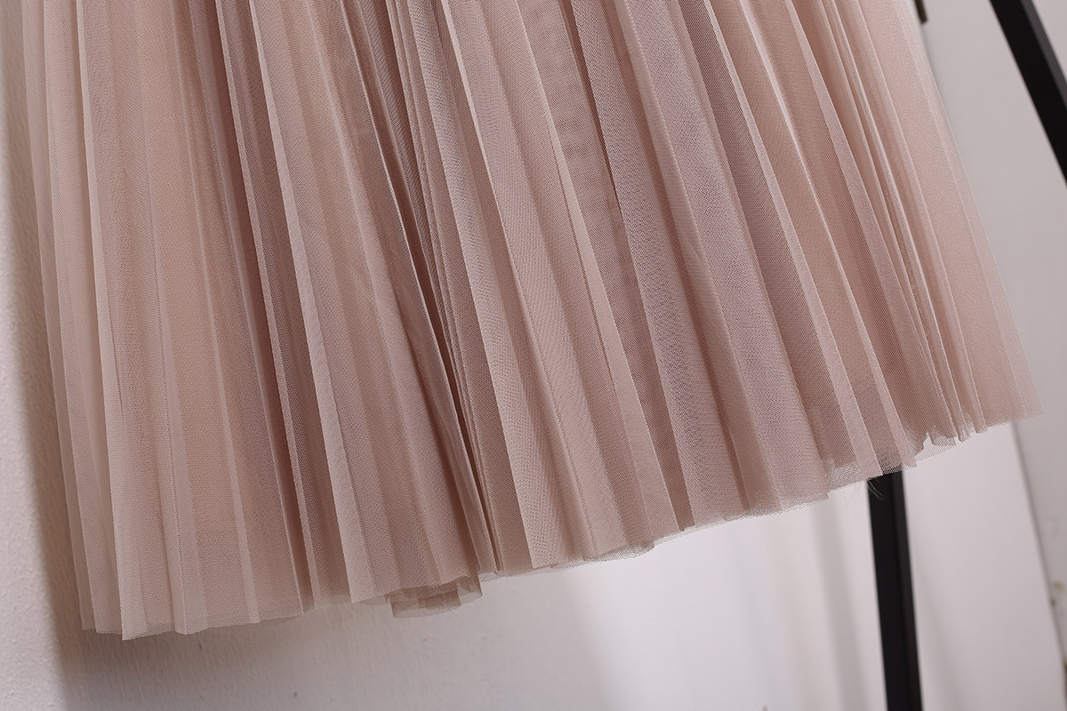 黑色 壓褶紗網中裙S418