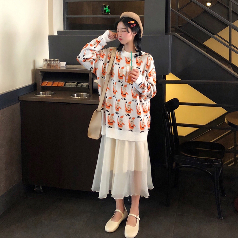 / 港味chic圣誕老人寬松長袖套頭毛衣女冬裝2018新款寬松針織衫外套