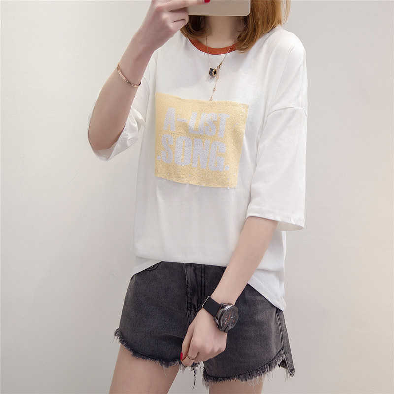 女裝春裝短袖上衣女夏新款白色t恤女寬松打底衫韓版時尚百搭
