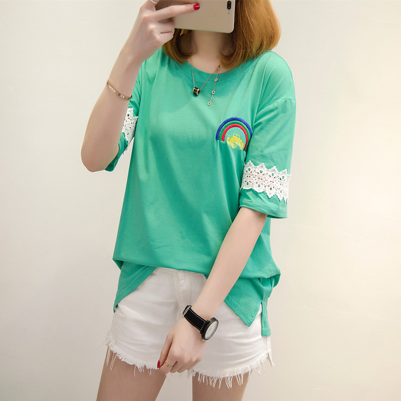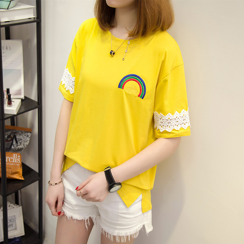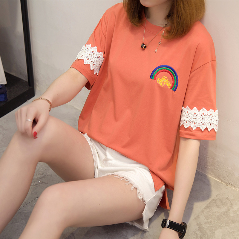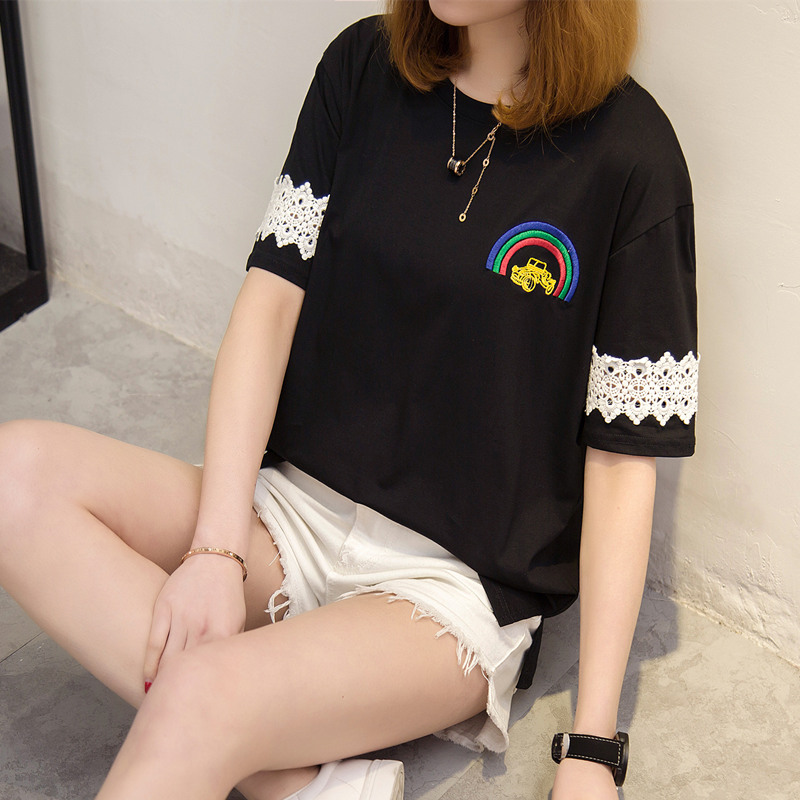 白色蕾絲t恤女短袖半袖寬松上衣女夏裝新款韓版女裝百搭體恤
