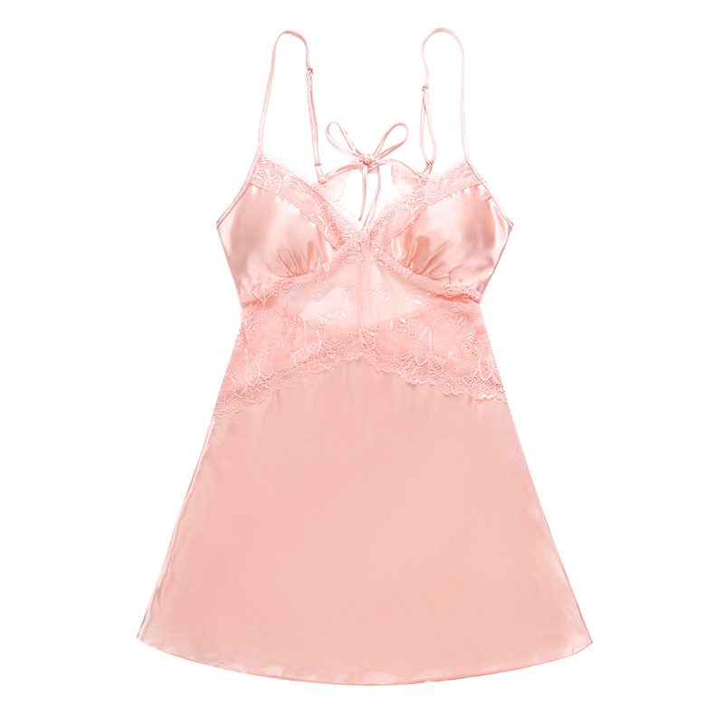 / 性感睡裙女夏吊帶春秋絲綢帶胸墊睡衣女夏季極度誘惑漏背情趣內衣