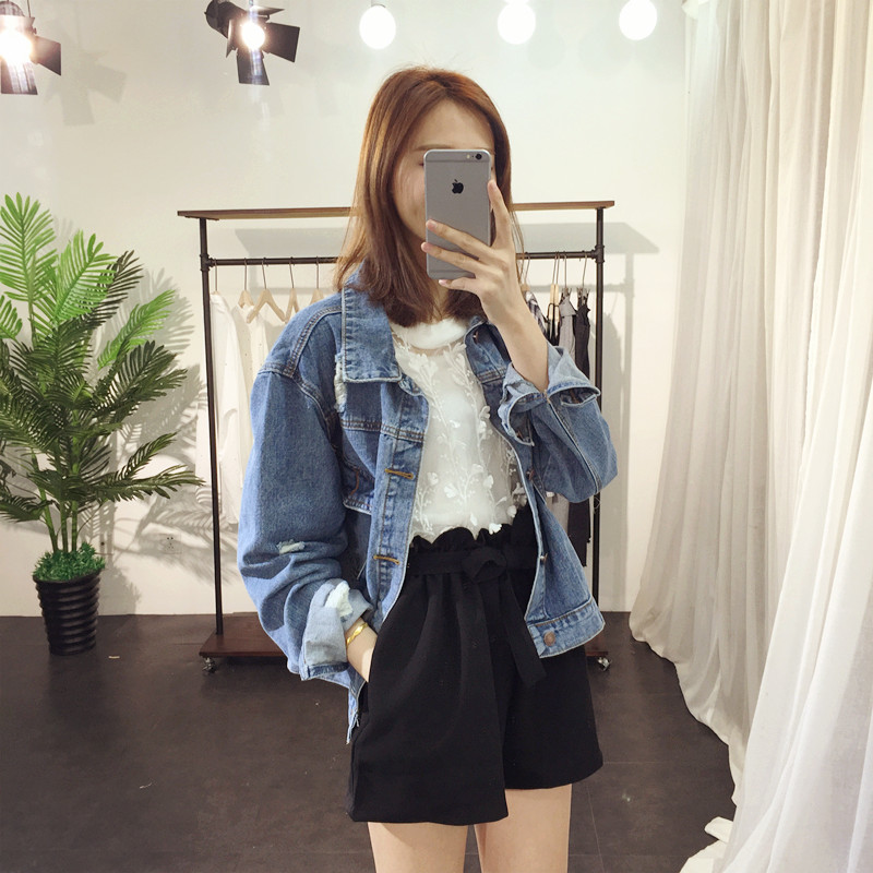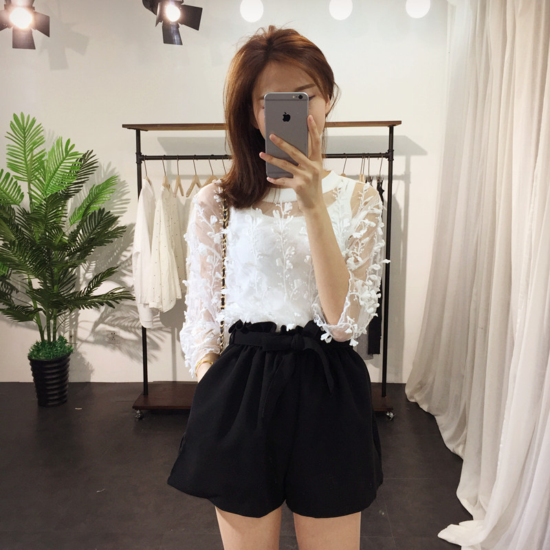/ 秋冬2018新款女裝闊腿寬松超短褲女高腰 系帶花苞學生休閑褲子