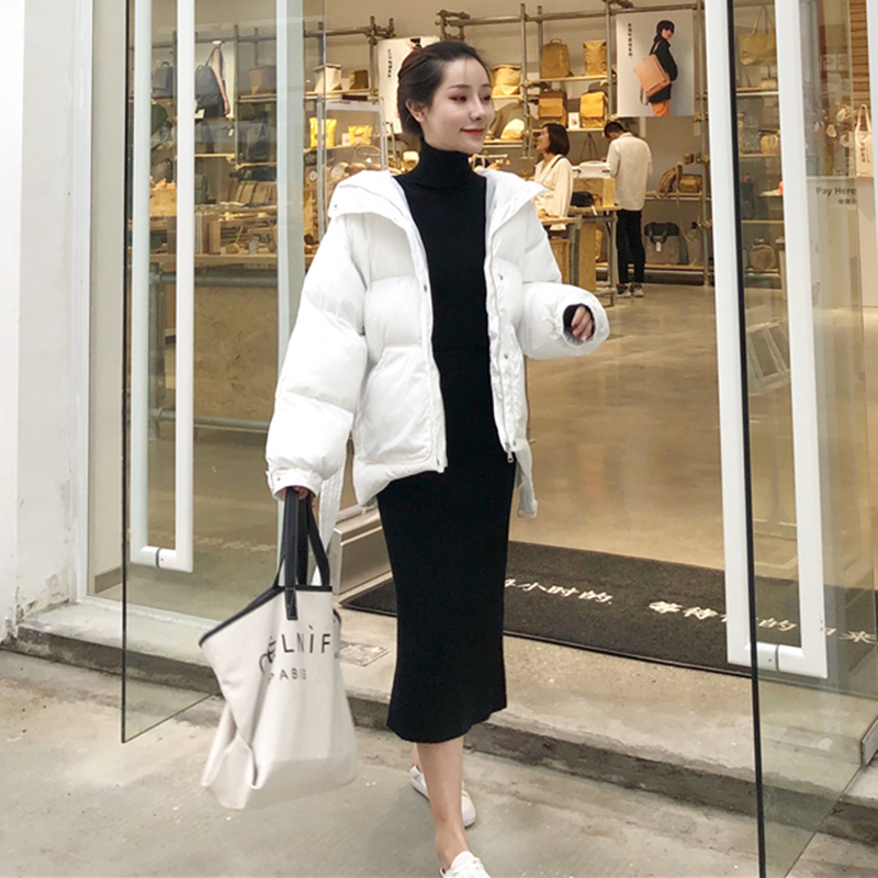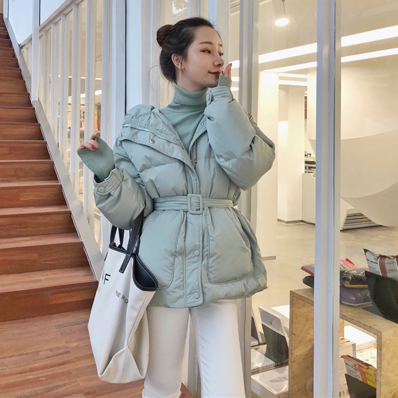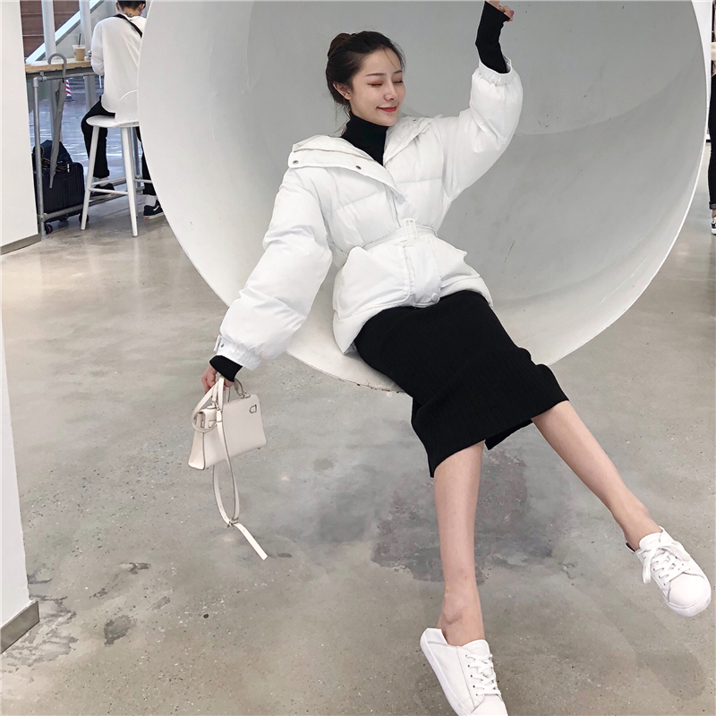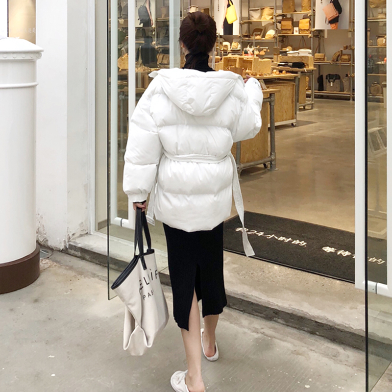 冬季女裝2018新款韓版腰帶收腰加厚棉衣外套連帽長袖黑色面包服潮