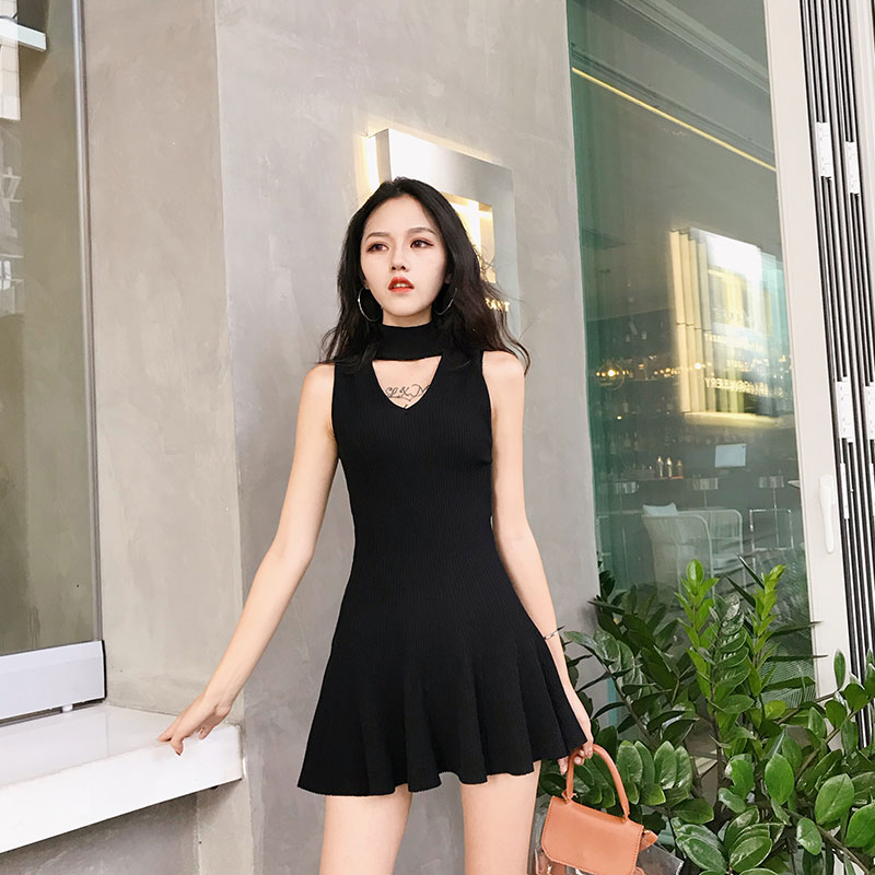 新款韓版女連衣裙2018新款夏季顯瘦無袖復古chic氣質時尚百搭短裙