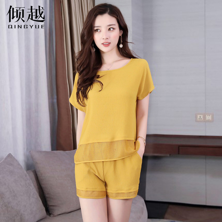傾越套裝女時尚2017新款夏季修身韓版大碼短袖短褲氣質名媛兩件套