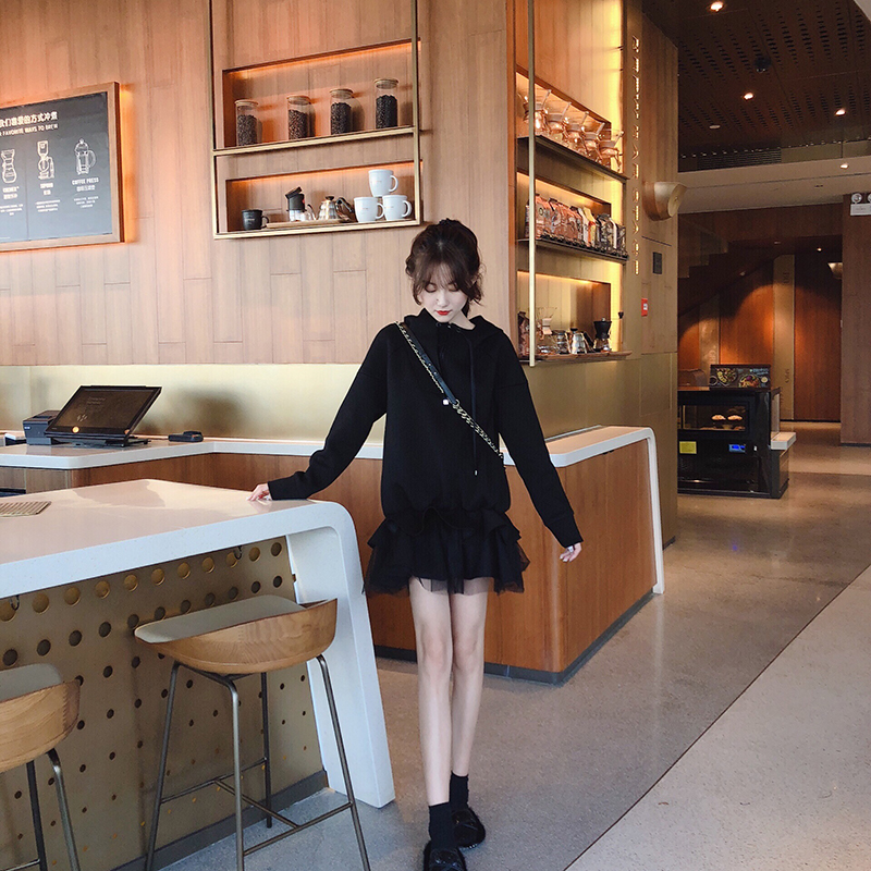新款時尚衛衣連衣裙拼接假兩件紗裙少女茶歇裙長袖荷葉邊魚尾裙潮