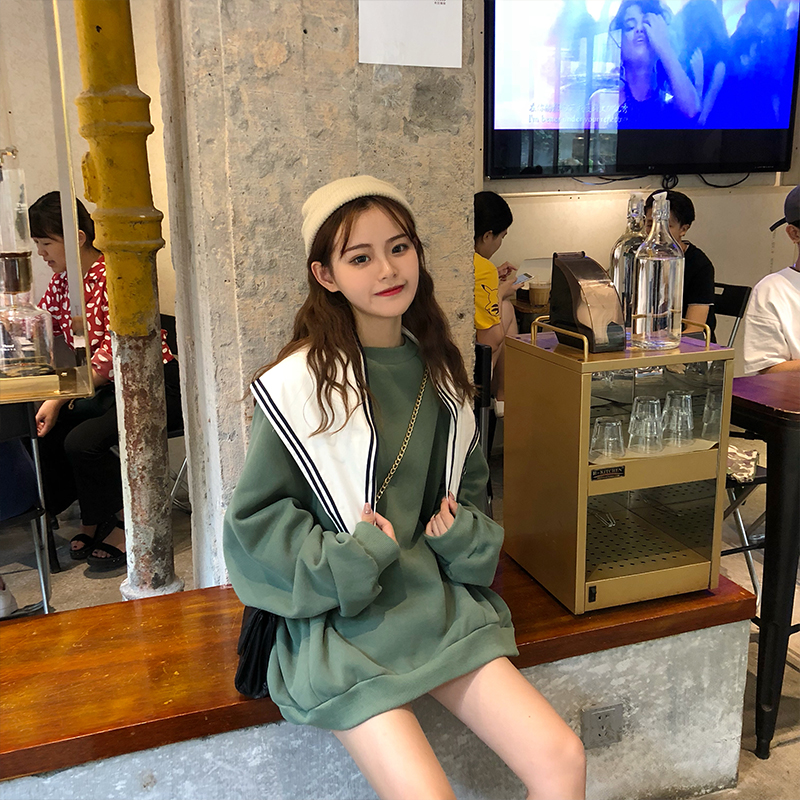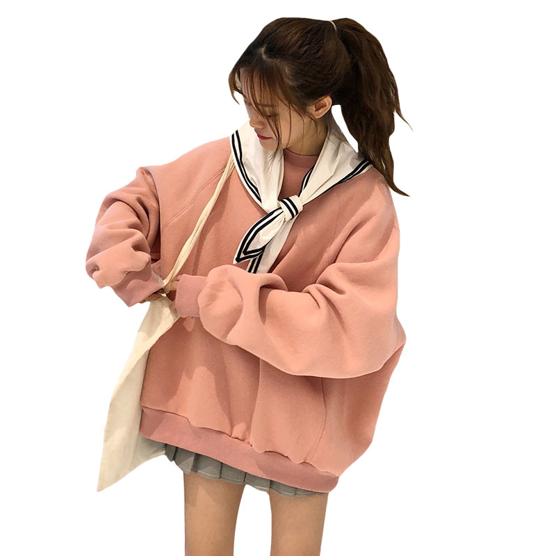 / 秋冬韓版BF風寬松學院風個性披肩加絨加厚套頭超火衛衣上衣外套女