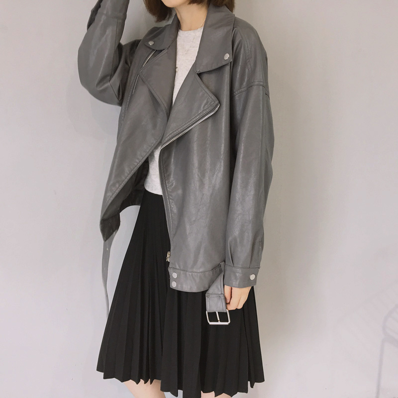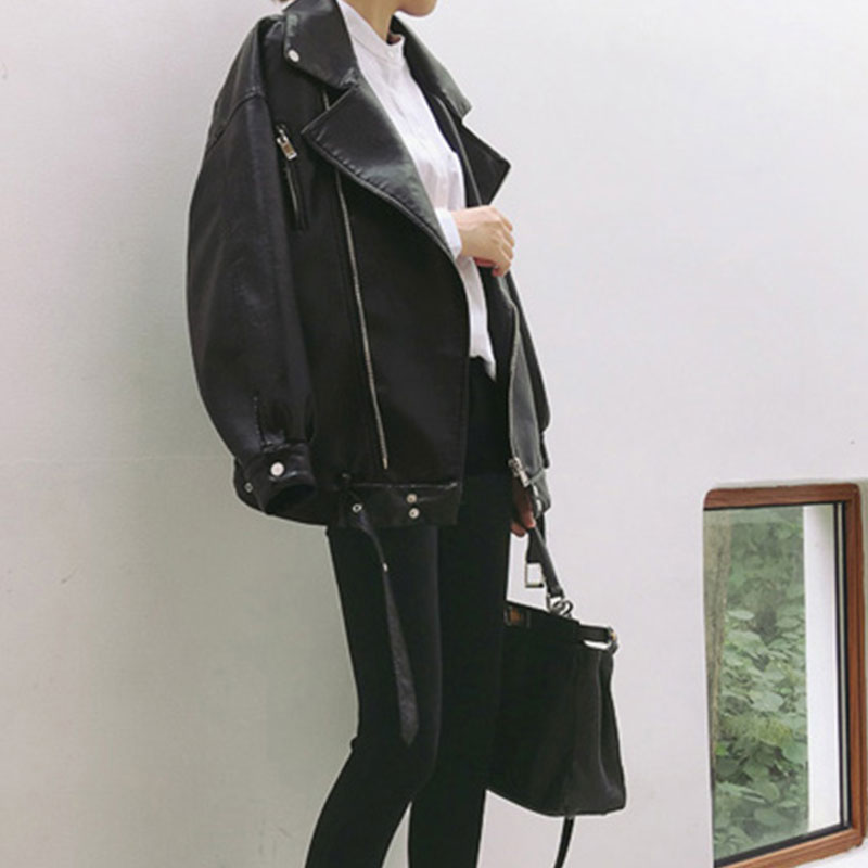 秋裝2018新款女裝機車翻領啞光PU皮衣寬松學生百搭夾克開衫短外套