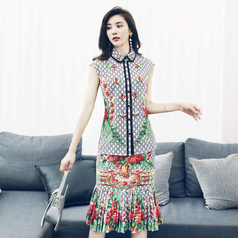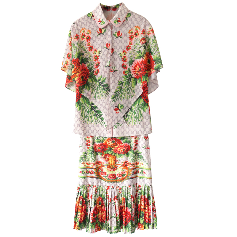 網紅復古港味女神范時尚套裝雪紡披肩上衣百褶半身裙顯瘦三件套