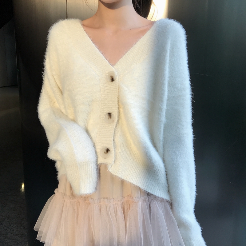 / 時尚套裝chic毛衣寬松針織開衫外套秋冬加厚網紗百褶蛋糕裙兩件套