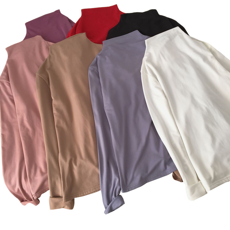 秋冬女裝韓版純色半高領修身加絨加厚保暖打底衫長袖T恤顯瘦上衣