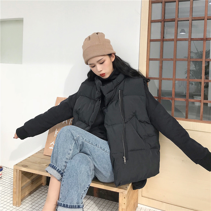 韓版時尚復古少女休閑風圓領面包服寬松保暖馬甲女秋冬2018新款女