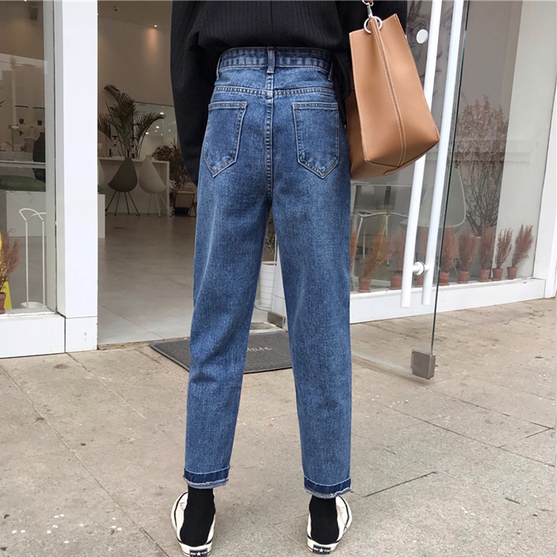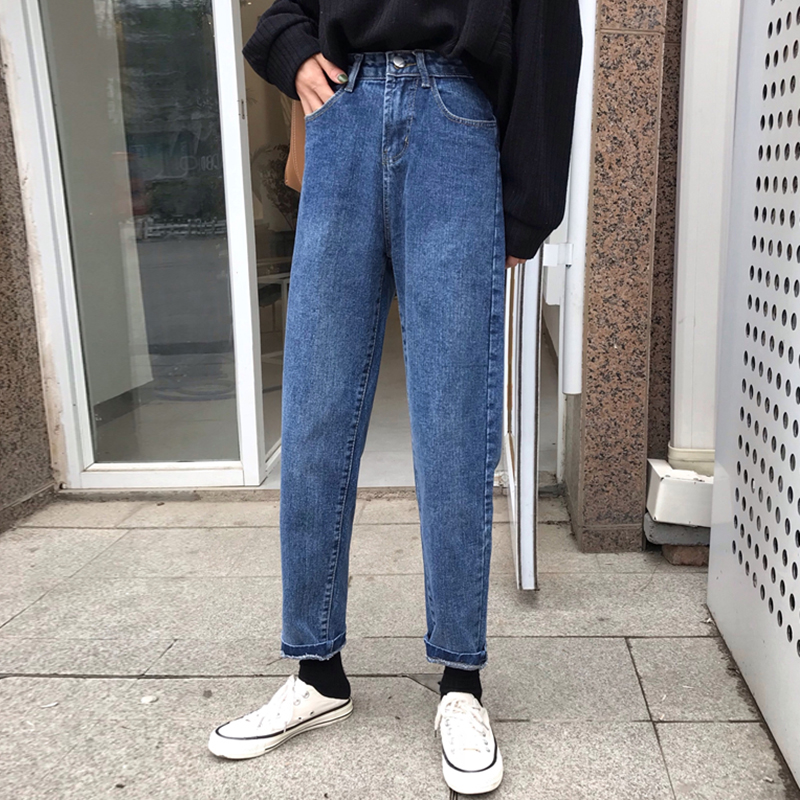 老爹褲女秋冬2018新款高腰顯瘦初戀牛仔褲學生寬松白色直筒長褲子