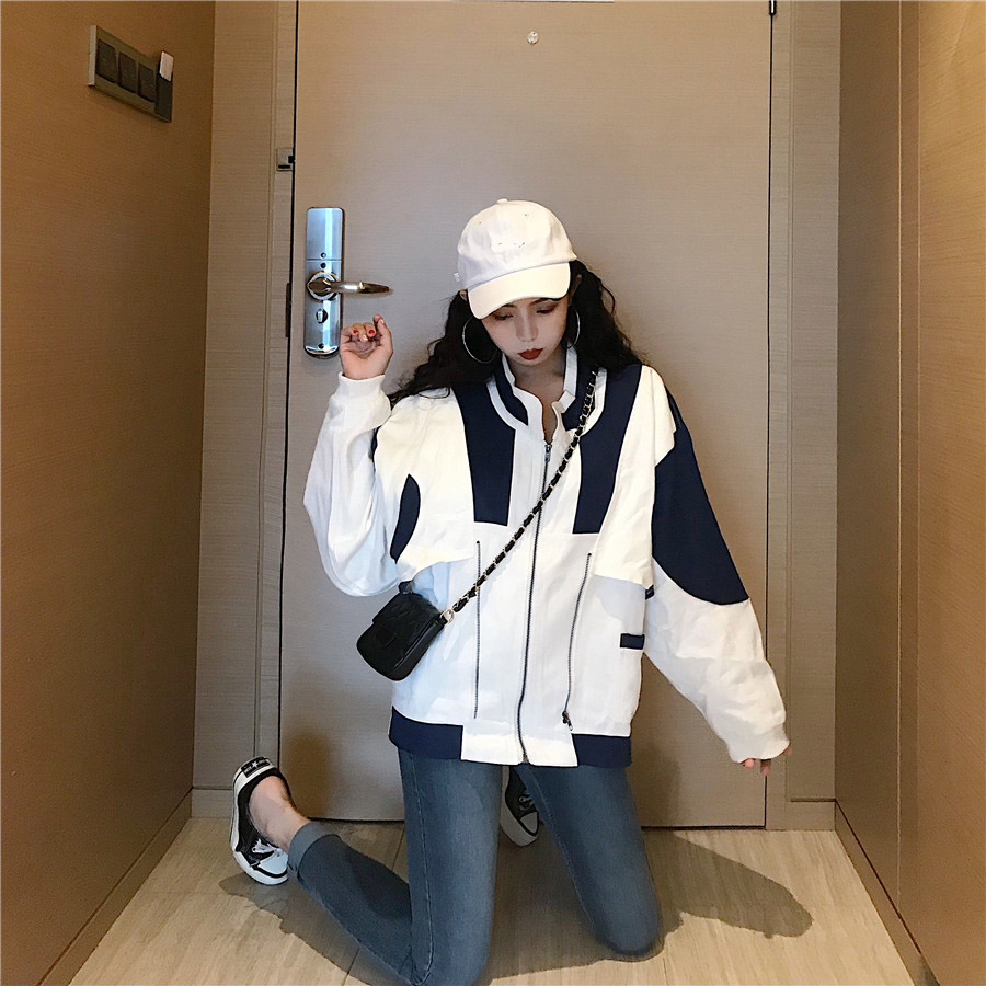 2018新款韓版小清新學生網紅同款小香風拼色短款夾克棒球開衫外套