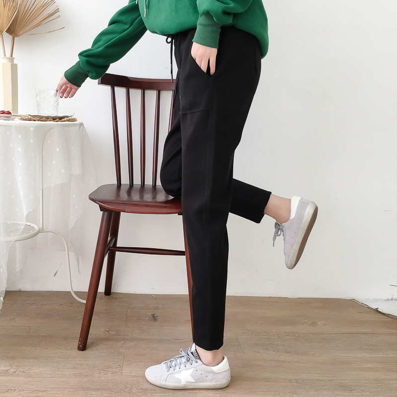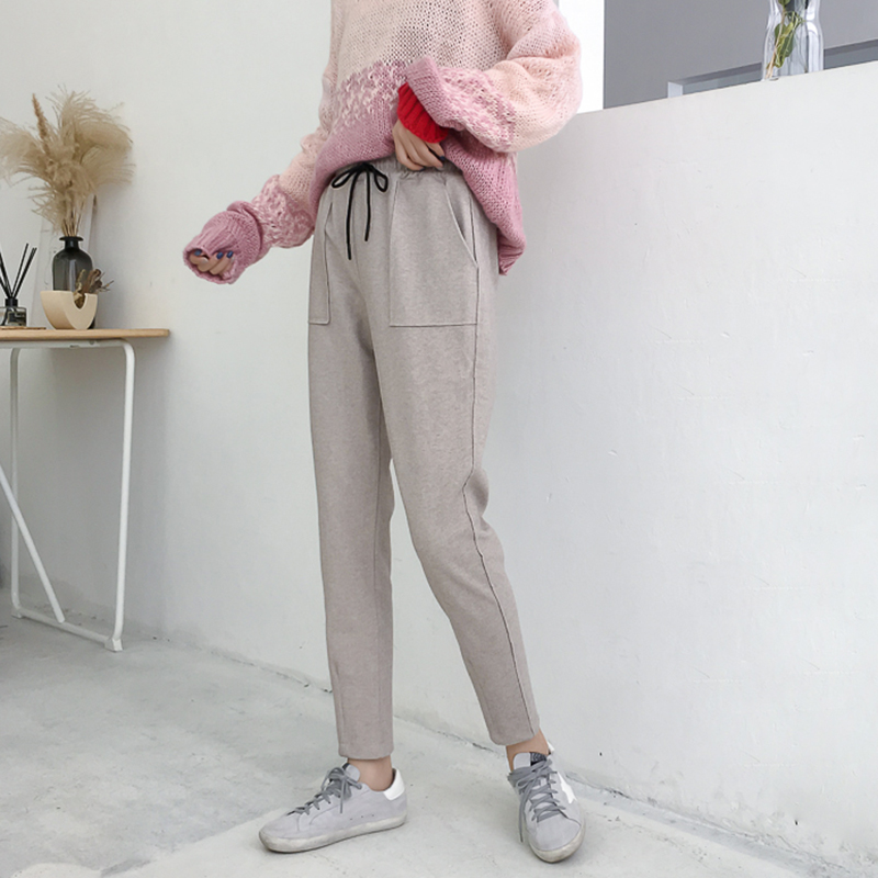 秋冬女裝2018新款學院風純色呢子休閑褲寬松哈倫褲高腰顯瘦九分褲