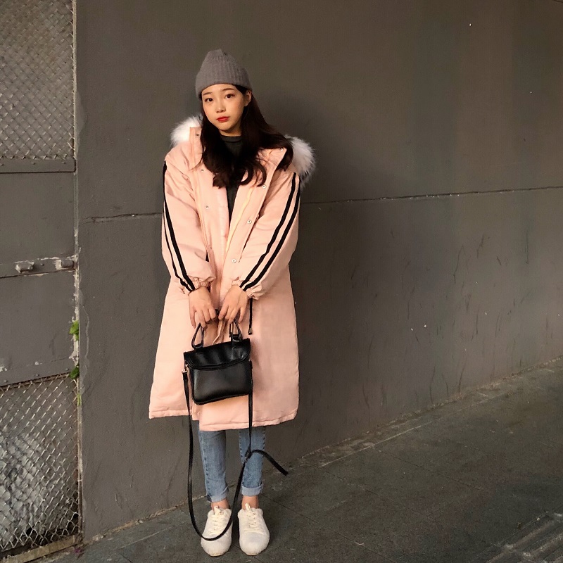 / 冬季新款韓版chic港風復古中長款毛領寬松加厚保暖面包服棉衣外套