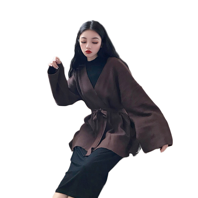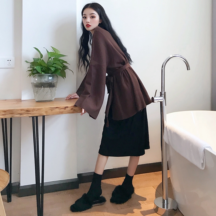 秋裝女2018新款套裝打底百搭連衣裙+開衫慵懶風毛衣寬松V領外套