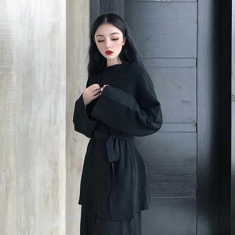 馬海毛網紅毛衣女2018新款針織開衫外套冷淡風針織吊帶連衣裙套裝