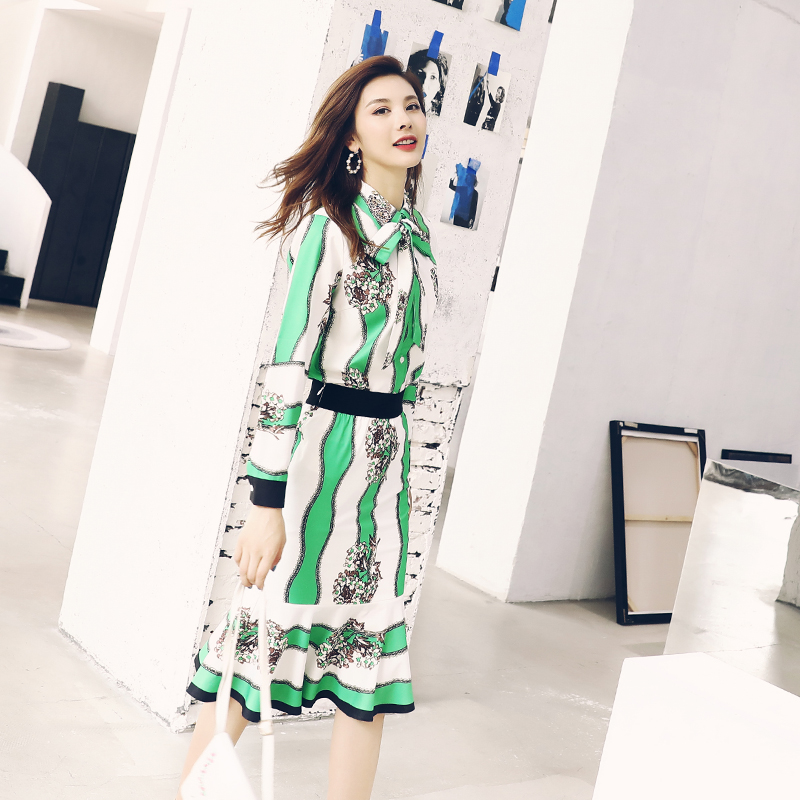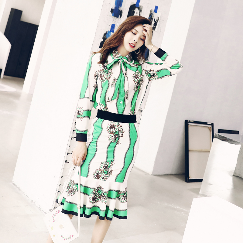 / S秀名媛OL淑女氣質時尚套裝女裝2018秋季新款襯衣魚尾半裙兩件套