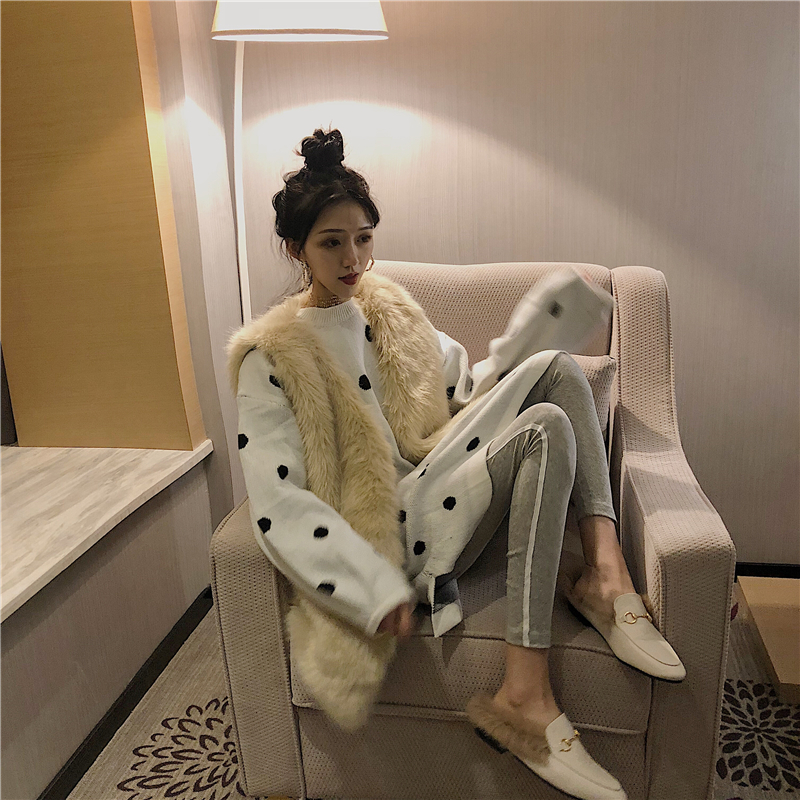 / 2018秋冬新款韓版時尚套裝寬松套頭毛呢連衣裙毛毛馬夾兩件套女裝