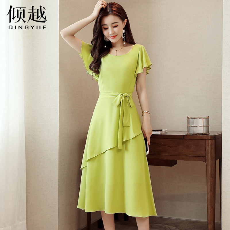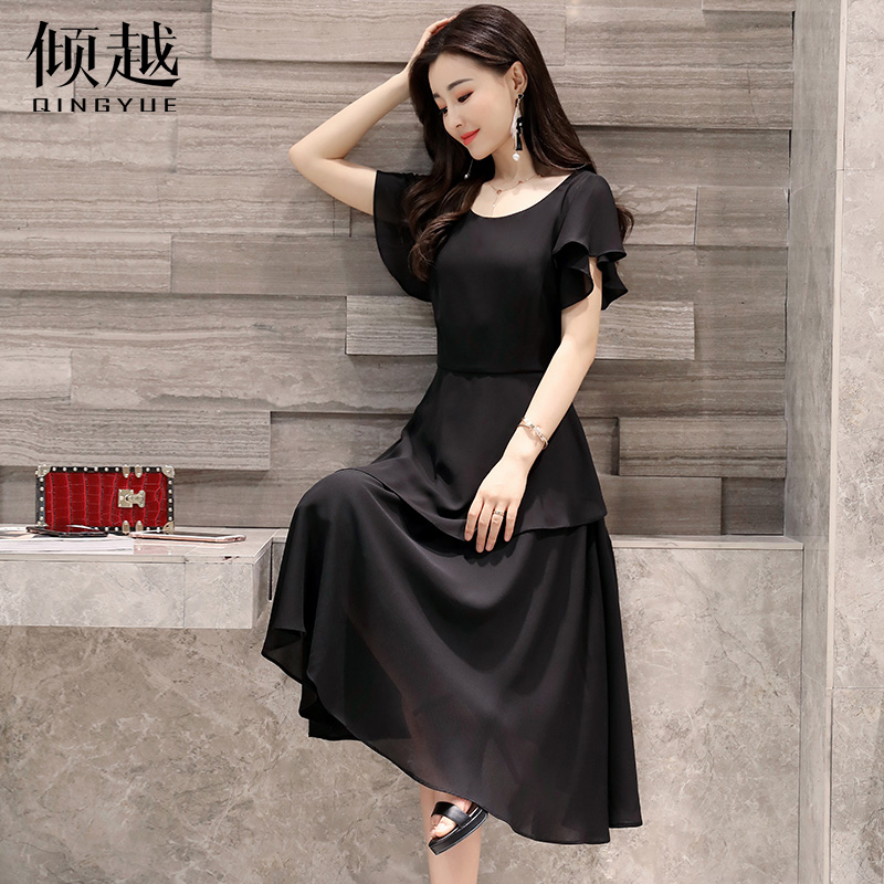 / 夏季新款女裝2017韓版顯瘦高腰大碼氣質修身雪紡連衣裙過膝長裙女