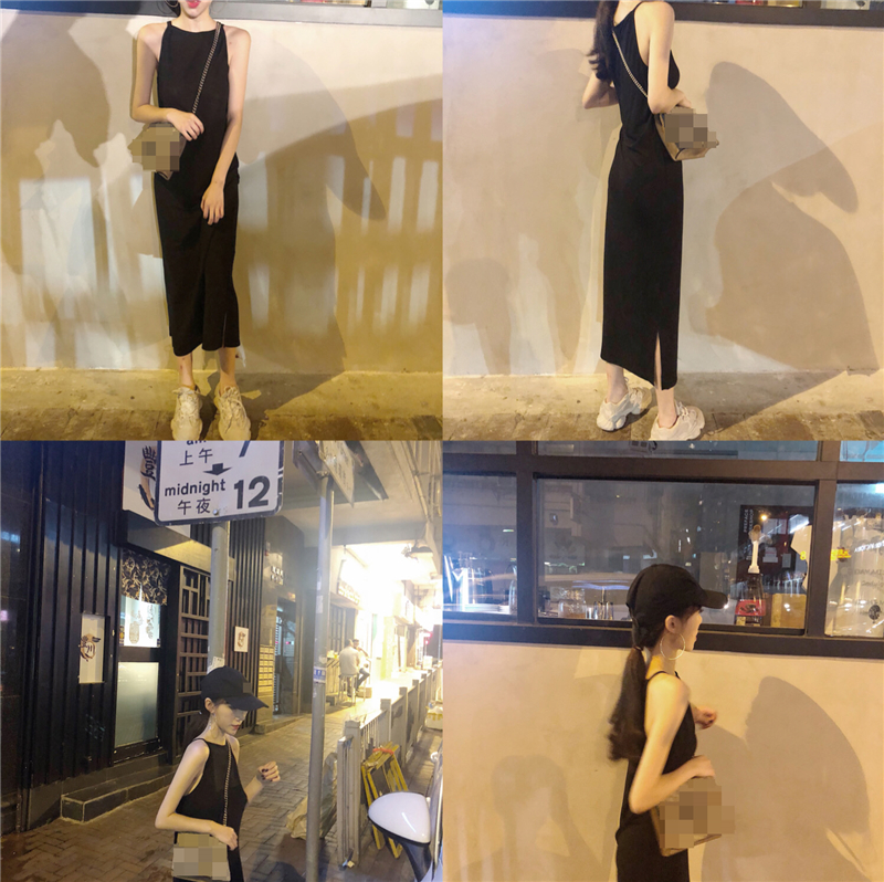/ 韓版時尚性感慵懶吊帶連衣裙女夏2018新款開叉修身顯瘦長裙一步裙