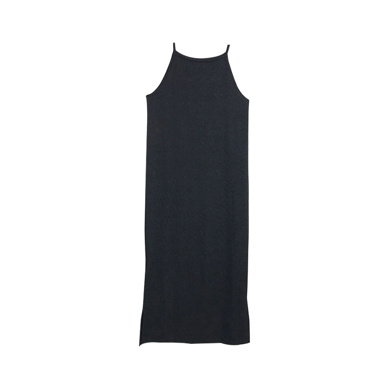 復古黑色吊帶背心女百搭外穿內搭寬松開衩長款韓版秋季打底連衣裙
