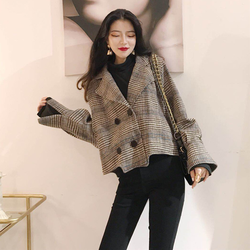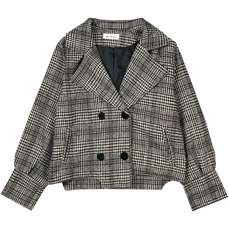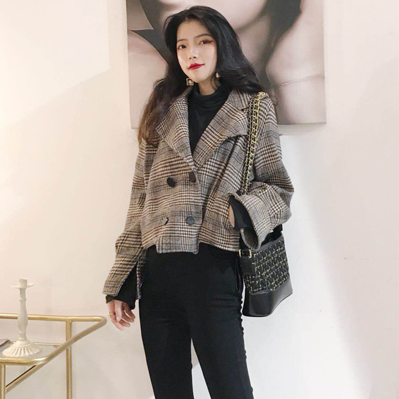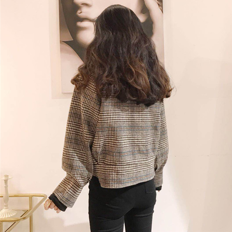 / 女2018新款秋裝復古港味寬松格子外套時尚休閑西裝領長袖呢子上衣