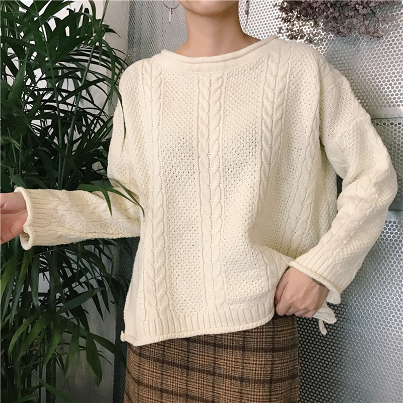 復古麻花針織衫秋冬女裝新款寬松長袖慵懶風毛衣學生圓領休閑上衣