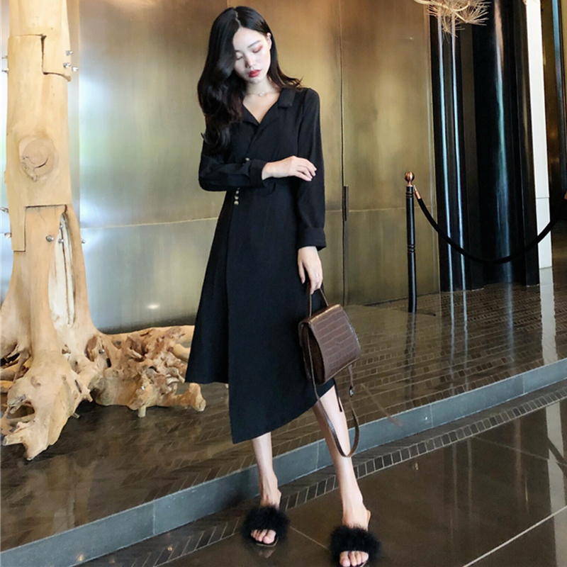 / 冷淡風氣質收腰系帶連衣裙秋裝女2018新款時尚不規則中長A字裙子