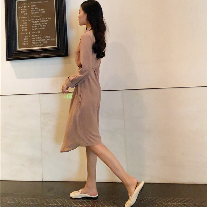 冷淡風氣質收腰系帶連衣裙秋裝女2018新款時尚不規則中長A字裙子