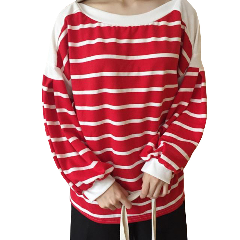 衛衣女早秋新款韓版女裝寬松顯瘦圓領燈籠長袖拼接條紋T恤上衣潮